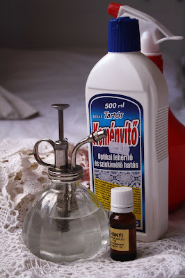 Ezt a problémát (is) segít megelőzni, ha egy kis vízzel bespriccelem előtte, vagy erősebb fokozatra állítom a gőzölőt. A spriccelőbe betöltöttem a vizet és tettem hozzá pár csepp levendula olajat, hogy még szuperebb illata legyen.