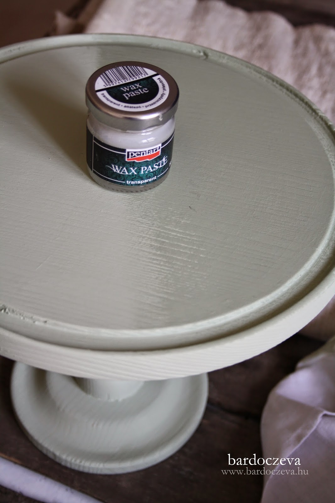 A lefestéséhez megint a jól bevált dekor paintet vettem elő, country zöld árnyalatban. Egyetlen réteg is elég volt, mert az alap nyers fa volt és nem volt sötét.