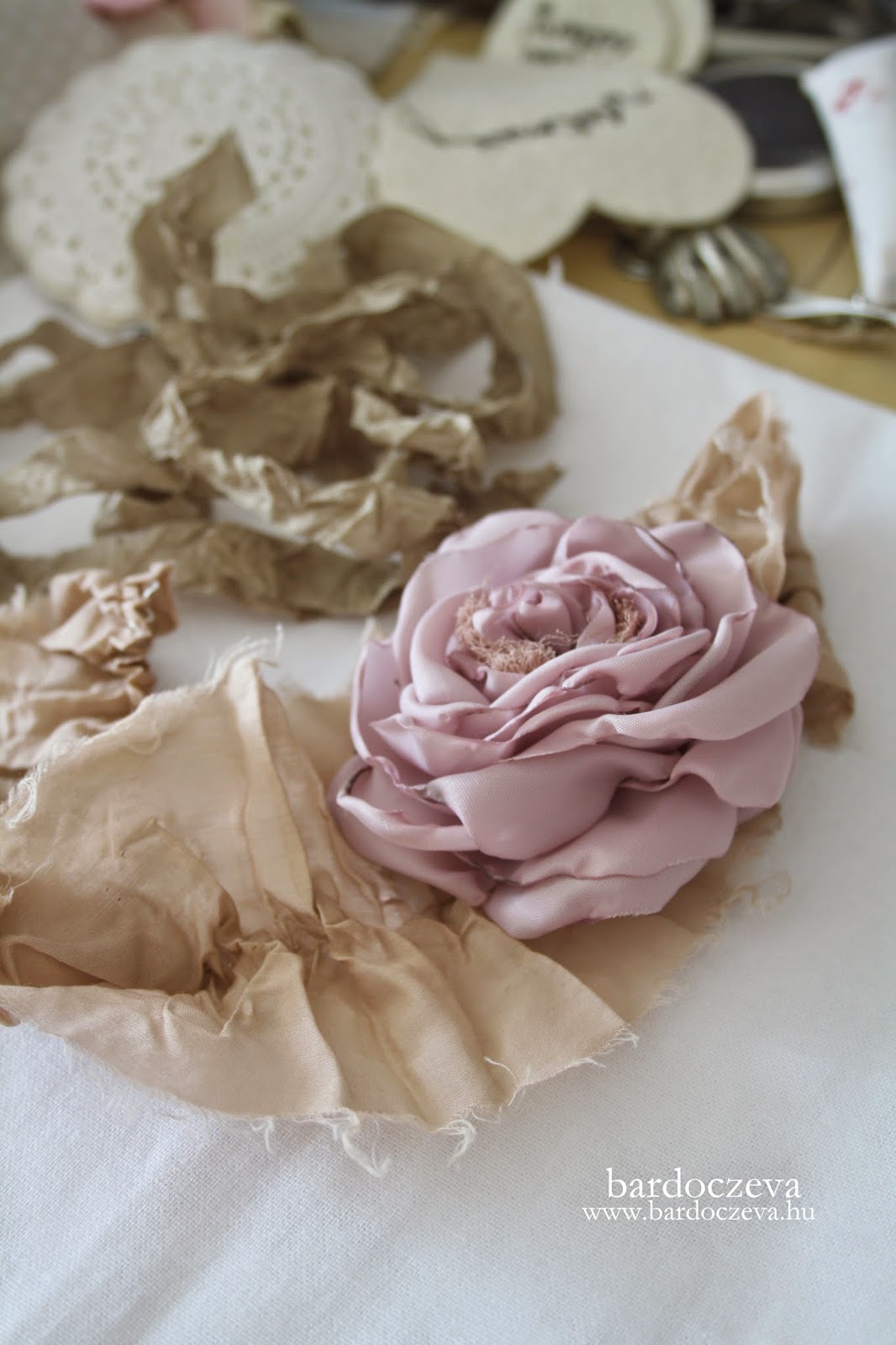 Hogy segítsek kicsit megidézni, készítettem egy kis útmutatót arról, én hogyan szoktam ezeket a textil virágokat készíteni.
