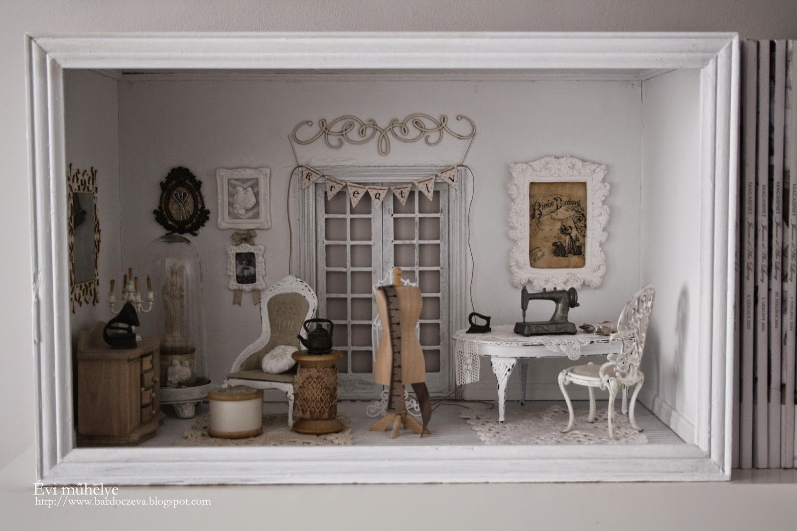Sajnos menet közben elfogyott a fehér festékem, így jóformán csak félig van készen, de nem tudtam itt abbahagyni közel egy hétre, úgyhogy berendeztem...aztán majd bonthatom le megint, amikor meglesz minden, amit szeretnék még bele.:)