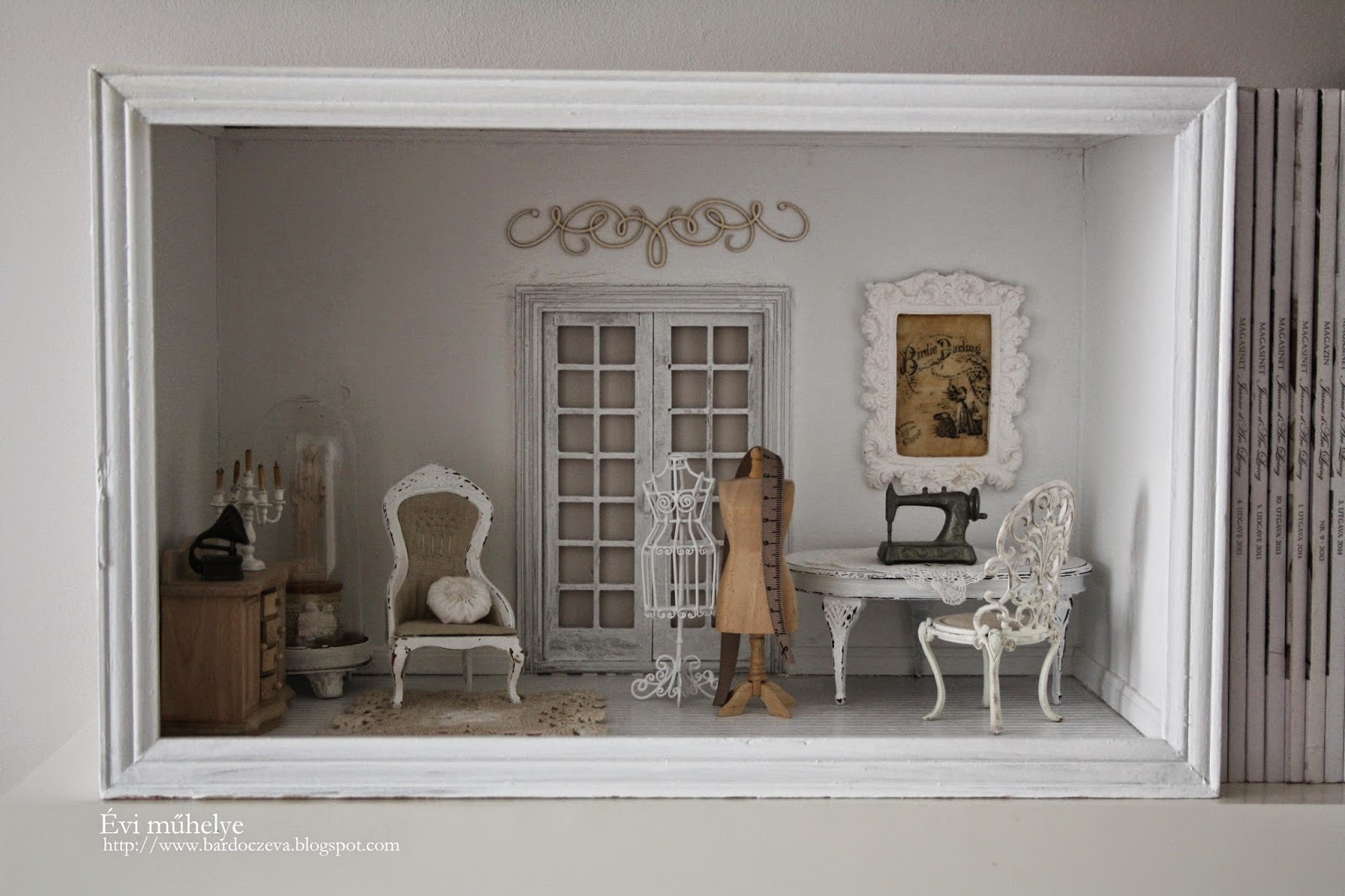 Sajnos menet közben elfogyott a fehér festékem, így jóformán csak félig van készen, de nem tudtam itt abbahagyni közel egy hétre, úgyhogy berendeztem...aztán majd bonthatom le megint, amikor meglesz minden, amit szeretnék még bele.:)
