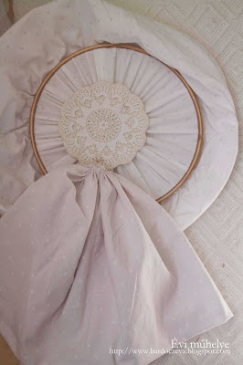 Ráillesztem a csipke díszt és kézzel körbevarrom ügyelve rá, hogy középen maradjon a dísz.