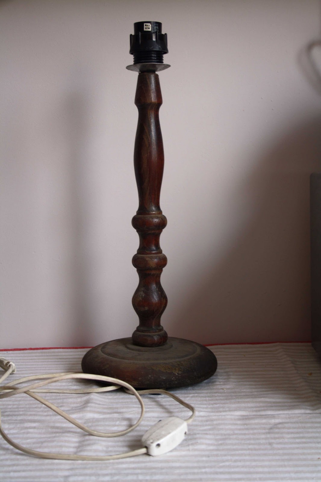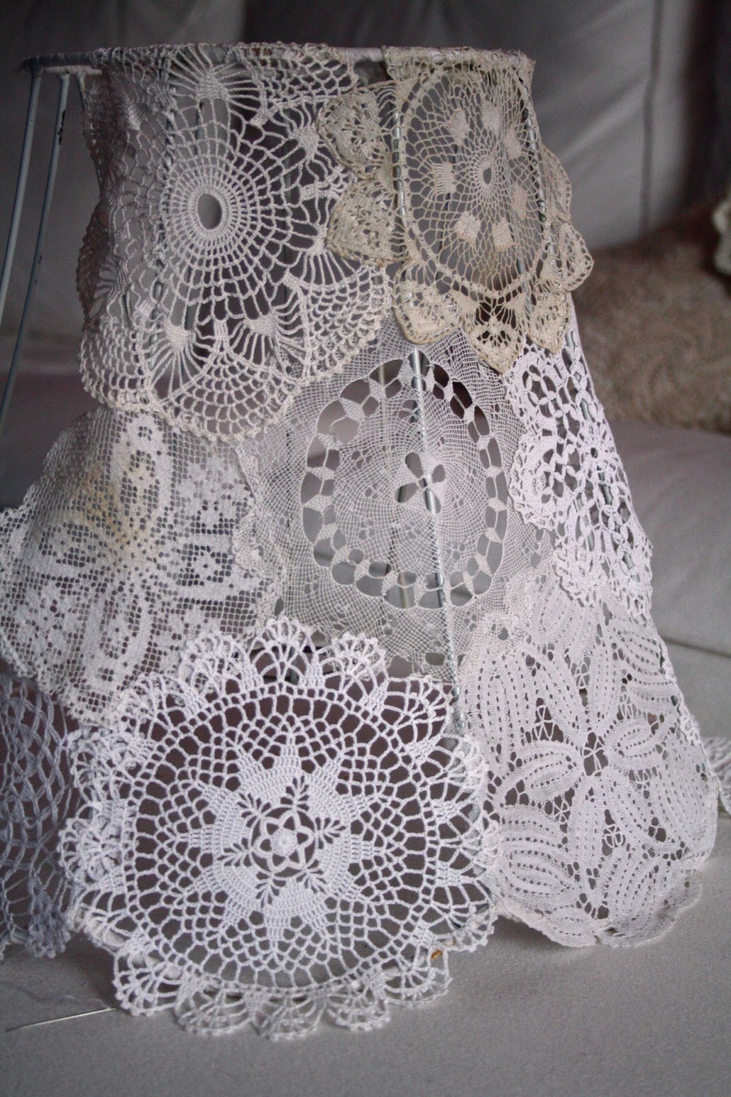 Az úgy volt, hogy ez a lámpa nagyon megtetszett nekem a vaterán és mivel nagyon olcsó volt, 1600 Ft mindennel együtt, működőképes állapotban, lecsaptam rá. Bár eleinte csak a lámpatestben láttam fantáziát, mivel esztergált, festhető kedvem szerint, később jött a megvilágosodás, hogy tulajdonképpen az ernyő formája pedig teljesen alkalmas a kerek csipkéim újrahasznosításához.